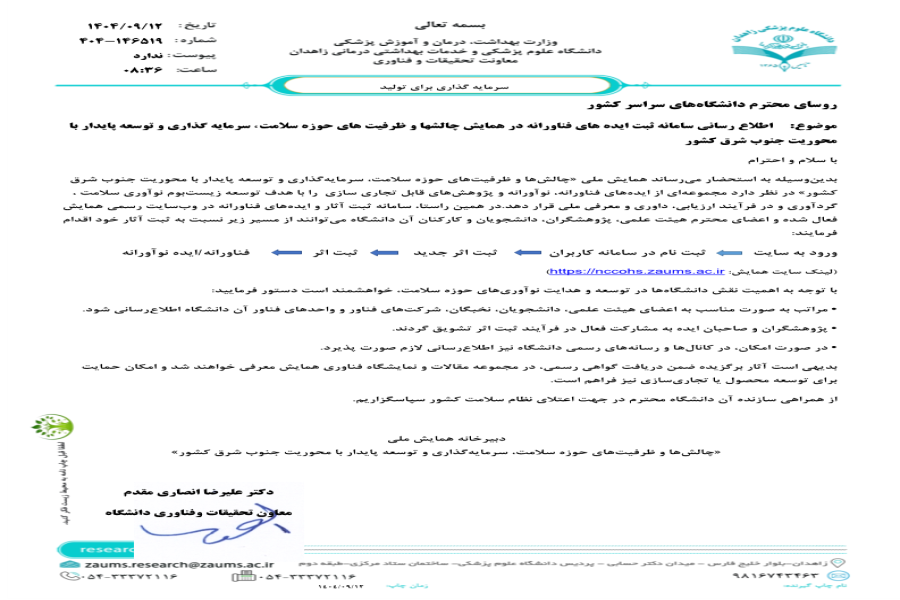 علوم پزشکی زاهدان برگزار میکند: همایش ملی چالش ها و ظرفیت های حوزه سلامت، سرمایه گذاری و توسعه پایدار